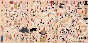 Affiche Blue art "UTAGAWA KUNIYOSHI – Cats suggested as the fifty three"