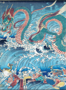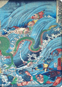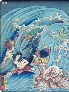 Affiche Blue art "UTAGAWA KUNIYOSHI - Recovering a jewel from the palace of the dragon king I"