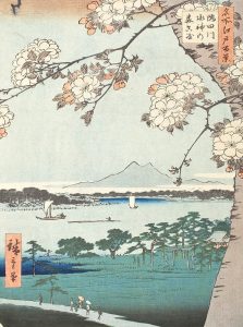 Affiche Blue art "HIROSHIGE ANDO – Suijin shrine & massaki"