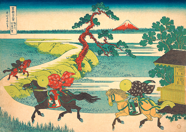 Sekiya Village on the Sumida River de Katsushika Hokusai est une estampe paisible représentant un paysage fluvial dominé par le calme du Sumida et la simplicité rurale du village de Sekiya. De petites embarcations glissent sur l’eau, tandis que les berges sont ponctuées de maisons traditionnelles et de végétation. Avec ses lignes fluides et sa composition équilibrée, Hokusai capture la sérénité du quotidien et l’harmonie entre l’homme et la nature, dans un style à la fois réaliste et poétique.