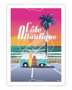 Affiche 40 x 60 de chez Doz. L'église Saint-Étienne est une église catholique située à Ars-en-Ré. Elle est reconnaissable par son clocher pointu blanc et sa flèche noire se détachant de l’horizon, ce monument emblématique de l’Île de Ré sert d’amer pour les marins en navigation dans les pertuis.